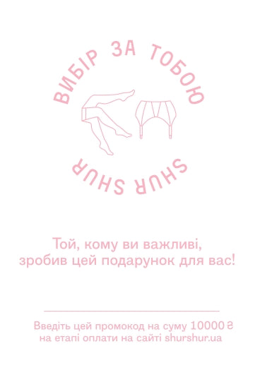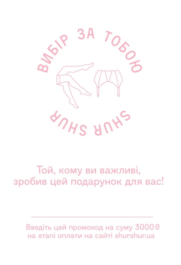 Купуючи сертифікат, ви вирішуєте проблему вибору моделі, кольору та розміру.Сертифікат дійсний 6 місяців.На цю суму ви можете придбати будь-який комплект у наявності.